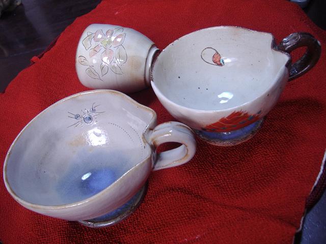 昨日、[薩摩焼フェスタ]に行き購入してきたスープカップです。毎年沢山の窯元が一同にかいしてフェスタが開かれていて友人達と出かけてきます。21日から開催されてて、先日の生協の総代会議も同じ場所だったので一足先に下見していたのですが、買うのは又友人達と一緒に来た時にと待っていました。昔は県下あちこちの窯元まで出かけていて好きな窯元もいくつかあるので楽しみでお出かけしてきました。ここの図柄にカニがあり大好きなブルーの色合いもあるので他にもいくつか持っていますが冬に向けてスープカップようにふたつ買い求めました。たぶんこれでコーヒーなども飲めるでしょうし、飲むでしょう。(^^ゞ置くにある湯飲みは運よくお買い上げごとにもらえる抽選券でひいたら当たったものです。これも優しい花柄のものでラッキーでした。鹿児島には薩摩焼というのがあり、その陶工たちの祖先は大陸から来た人たちでいまもその子孫の人たちが伝統を引き継いで頑張っています。普通の薩摩焼はクリーム色に金銀鮮やかな色で綺麗な図柄が施されてるものを一般的には見かけられるでしょうが、[白薩摩][黒薩摩]とあり[白薩摩]のほうです。[白薩摩]はお殿様たち用で庶民は[黒薩摩]をつかっていたそうです。最近はその[黒薩摩]も沢山の陶芸家がでてきてカラフルになりデザインも凝ったものまであり少し前までの黒地に少し釉薬などで色身がついたものとは雲泥の差があります。焼き物もだんだん増えてきて食器棚もいっぱいだし、お気に入りの焼き物を入れるために買ったカップボードも満杯。。いらないものは捨てなくてはと思いながら、「もったいない」精神が出てきて今度割れたら処分しようと待っていますが、沿いう物に限ってなかなか割れず大否物がつい油断すると少し端が欠けたりと悔しい思いをします。今回はスープなどにしてどんどん使っていくつもりです。さてその日は少し早めに出てランチのオープンしたばかりのタイミングでお店に入りパスタなどランチコースをいただきました。いくつかのパスタを選べるというので「案納芋のクリームパスタ」にしましたが、予想してたさつま芋は本の少し上に小さなカットが載ってるだけ。。ちょっと残念でしたが、全体はボリュームもあったしデザートもコーヒーも美味しかったので又来たいと思うお店でした。諸時期の後に焼き物を何度も見て回り、帰宅途中でまたコーヒーセットの休憩。流石に夜のご飯はあまり食べたくないという状態で本当に幸せな一日でした。もう二十年近く、近くに住み毎週生協の配達日にも顔をあわせてはおしゃべりしてさらに時には温泉やランチと裸もみせあった隠してることがない友人達ですので気を使うこともなく、楽しくストレス発散、リフレッシュすることが出来ます。老後もこのまま楽しく過ごせるように、健康でいなくちゃと誓い合いました。やはり男性より女性が長生きするというのはこういう風に人生を楽しめるからではないかしら?