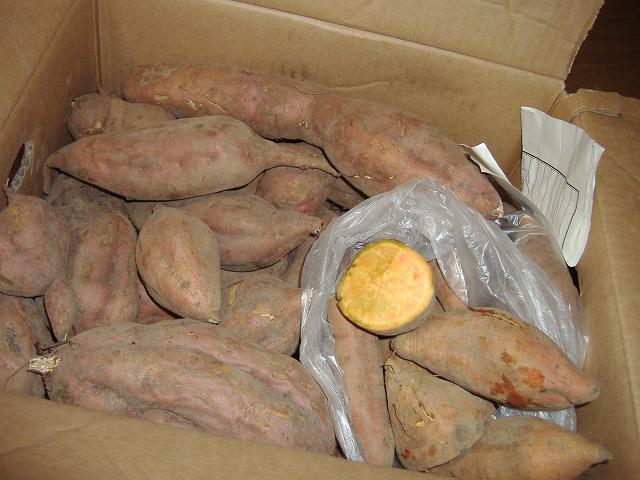先日、さつま芋のお勉強会でご一緒のおじいちゃんから珍しい品種などを含むさつま芋の箱がお手紙と一緒にプレゼントとして届きました。紅あずまや案納芋、紫芋の他にジュースなどに加工される品種「ジェイレッド」という私もまだ食べたことない品種のさつま芋も入っていました。この方とは偶然ですが、先日私が新聞に載った時に記事のなかで長く町長などをしてた祖父のことに触れたのを読まれていてその地元の駅名をあてられました。驚いてると戦後引き上げた時に、そこの駅に降り立ちたぶん地元の名士である祖父のところに立ち寄ったと言われていて偶然のことにお互いびっくりしました。また私がさつま芋のおやつなど差し入れしてるのを感謝されていて「今度お芋もが出来たら送るから。。」と言われていて黙って送ってくださいました。いつもレシピ本に向けて試作が続き、さつま芋不足を嘆いていましたが、ささやかなおやつのお返しが大きな箱で帰ってきて感謝です。《ジェイレッド》という品種はジュースに生でも加工できると聞いてるので明日にでもジュースにしてみようと思っています。一足先に蒸かして味見をしましたが甘くて美味しかったです。その甘いにおいに釣られて寝てるはずのさつま芋犬プリンもいつのまにか起きてきていておすそ分けを催促され半分横取りされましたがプリンが美味しそうに食べると言うことは味がいいと言う証拠。少し前にも種子島からとりよせたという案納芋もたくさんおすそ分けしてもらったし、ご近所からもそ~と玄関先にさつま芋が差し入れしてあったりと嬉しいことが続いています。世の中お金がなくても何とか回りまわってくるようにさつま芋も回りまわって帰ってくるようです。。変な例えかしら。。?これでさつま芋のストックがだいぶ出来たのでなんか元気が出てきたし試作も少し頑張れるかも。。ショウガもまた今日、大きな塊を5個も買ってきたし、さつま芋とあわせて身体にパワー充電できるでしょう。。