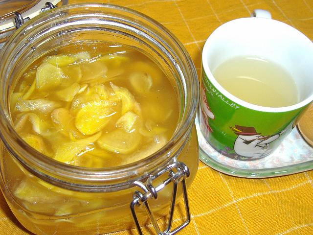 先日大量に買い込んだしょうがを半分はフードプロセッサーでペーストにしてフリージングパックに入れて薄く均等に延ばして冷凍保存していますが、残りの半分は【しょうが蜂蜜】にしました。スライスしたしょうがを父の蜂蜜に漬けただけですが、あっという間に蜂蜜はさらさらの美味しいシロップになりましたので今日はそれをお湯で割っていただきました。しょうがが効いていますが蜂蜜が甘く優しい味にしてくれたので美味しくてついついお代わりしてしまうほどです。またお風呂あがりにでも少し濃い目にして飲むつもりです。しょうがは身体を温めてくれるし、殺菌効果も期待できるのでインフルエンザが流行るこれからの時期、私には必需品です。ペーストもたくさん作ったので、料理にもちょっと端からポキッと折ってすぐに使えるし、大好きな【梅醤番茶】にも沢山いれていただくことが出来ます。【梅醤番茶】は番茶に本醸造の醤油をちょっといれて梅干と生姜の摩り下ろしたものを混ぜただけのものですが、これが慣れると美味しくて癖になります。私はちょっとだけ黒砂糖を加えていただくので美味しいホットドリンクになり身体も元気になるような気がします。玄米菜食をする人たちのなかでは定番のお茶です。そういえば玄米を今切らしてるので、近いうちにコイン精米所に行き、もみのお米を精米するついでに玄米も精米してこなくちゃ。。昨日は少し風邪ッ気のようで身体もだるくて辛かったけど今日はゆっくり午前中寝てたし、薬なども効いたのか少しだけですが楽になったような気がします。いつも福岡の病院で予備に風邪薬ももらっているのですが、それが役に立ちました。でもまだ福岡に行く気力はないし、痛み止めがないのでお薬を送ってもらうように明日にでも連絡します。どうせ今年中にはもう一度病院に行き、一年のご挨拶もしてきたいとおもってるのでその時に清算するつもりですので。。長年お世話になってるのでお薬代などは先生が個人的に立て替えてくださってるのでこういうときは助かります。今日も少し小雨模様の一日でしたがプリンがお散歩を催促するので空模様と相談しながら行ってきました。いつもの遊歩道は紅葉するものはあまりないけどブルーベリー並木が少しだけ赤く色ついていて綺麗でした。まだいまならさほど寒くないし、プリンとのお散歩も出来るだけ行くようにして少しでも運動だと思い歩かなくちゃ。。