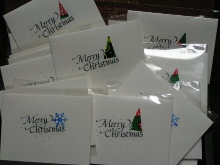 カリグラフィーの文字を書き、アメリカから送ってもらったクリスマスの布を切って、