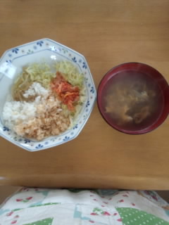 汁はラーメンスープを使って干ししいたけもやし。卵で