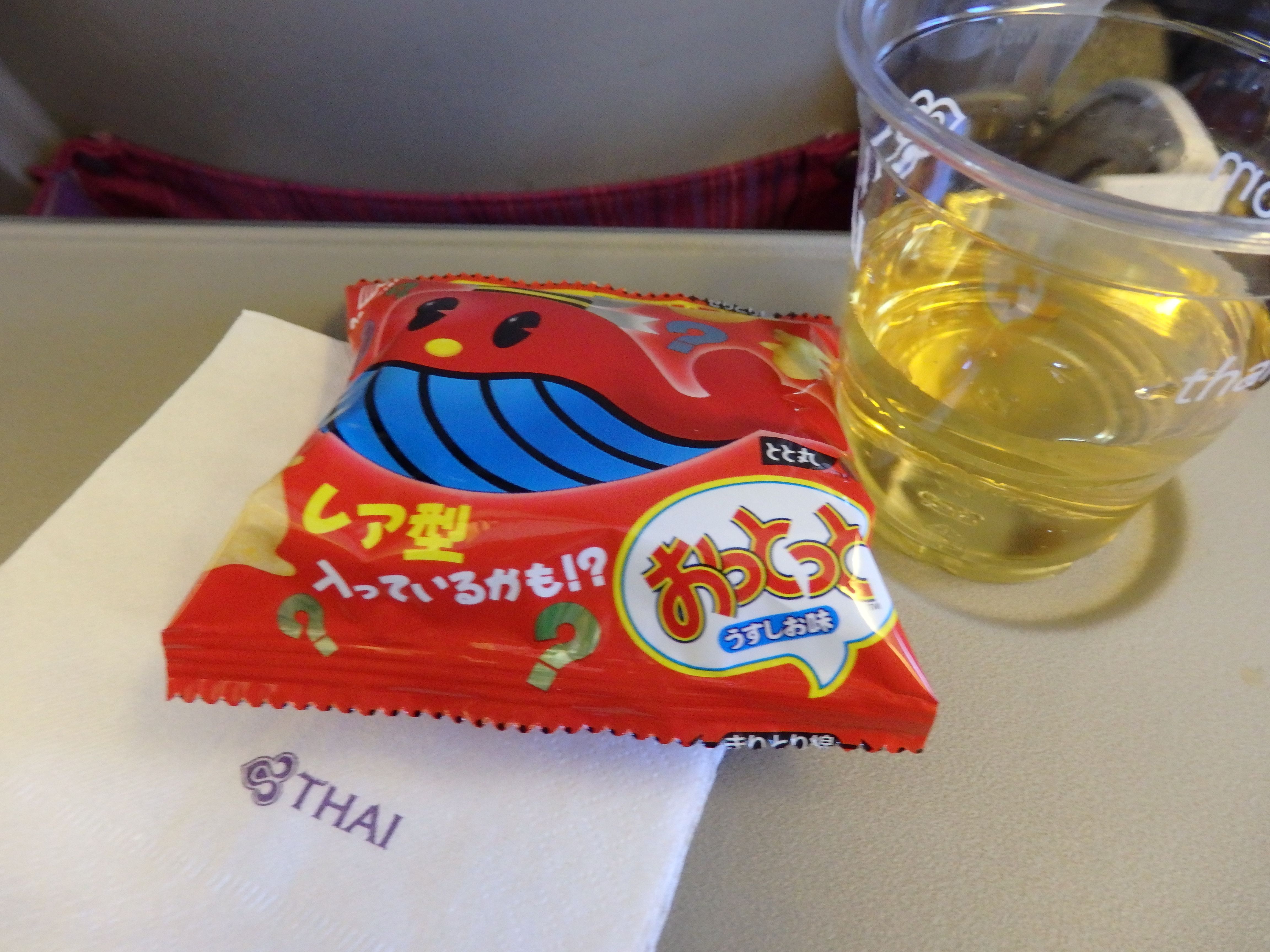 約15年ぶりのバンコク。初めてのタイ国際航空。TG671新千歳空港からスワンナプーム空港まで。新千歳を10時半くらいに出発してバンコクには15時半くらいに到着したかな。写真は機内食とスナック。2枚目の機内食は、配られるのが最後の方だったようで、選べなかった。。。このエビのやつしかなかった。3枚目のは、ソーセージがはさまったやつ。お腹いっぱいで私は全然食べれなかった。パッパッタイツセットトイレの近くの席だったんだけど、トイレに香水が置いてあるせいなのか香水の香りがくさくてくさくて。。。具合悪くなった。到着し、パスポートコントロールがすごい行列。私がいつも買ってるカルディのパッタイ。