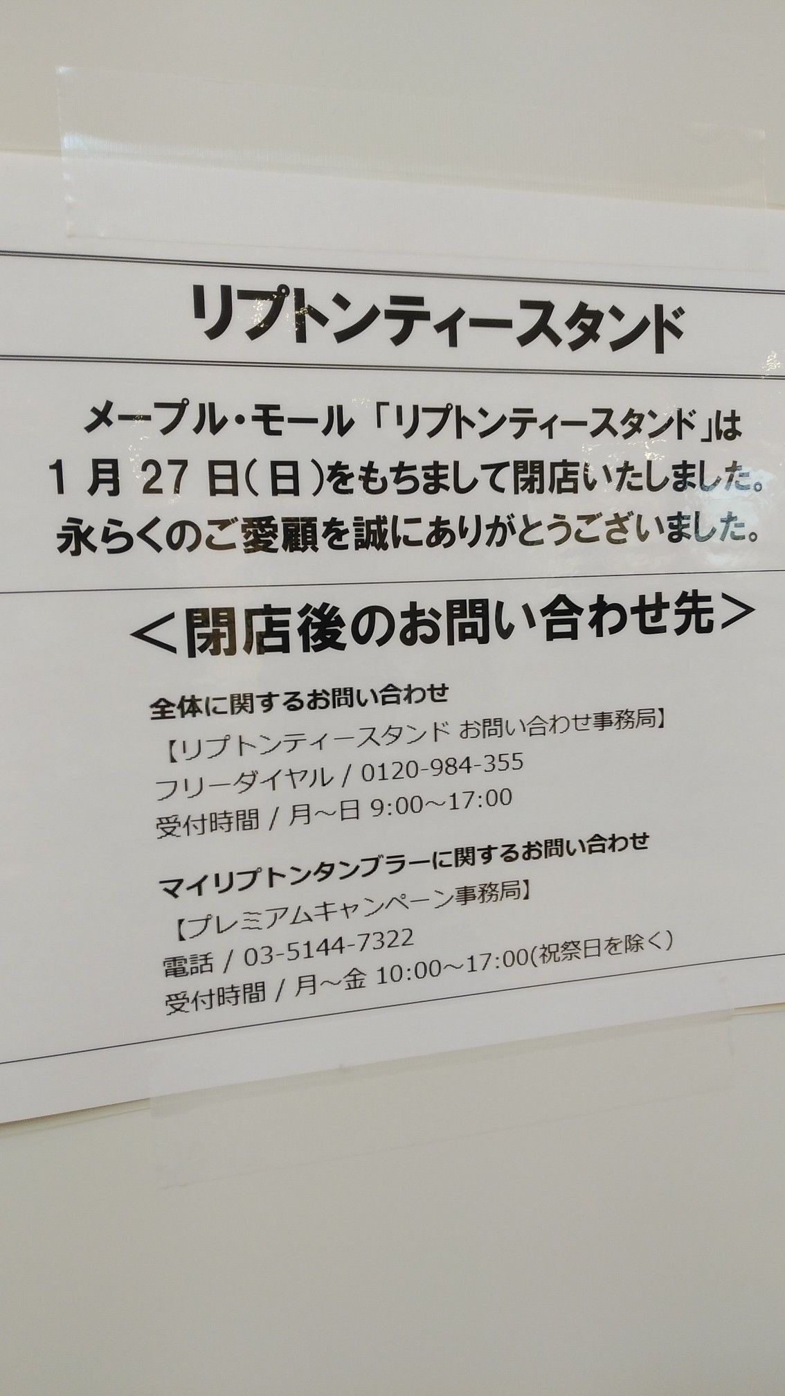 三井アウトレットパーク北広島に行ったら、 リプトンティースタンドが閉店してた。 繁盛してたようにみえたけど、なぜ閉店? 50%OFF 半額 名古屋のラシックにもリプトンティースタンドがあって 結構並んでたな。