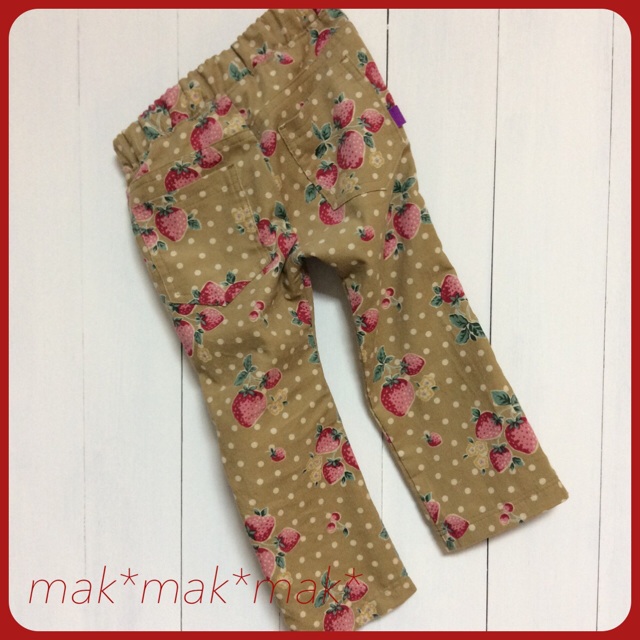 先日3歳になった女の子にまだサイズ90着用しているって聞いてポルカドロップスさんのほそパンツ、少しだけ縫い代を少なく縫いました。コーデュロイのイチゴ柄がかわいいです布:コチラ↓で購入。勢いで4mも購入してしまいました消費できるかな…★いすず秋の手づくり応援SUPER SALE★◇8月31日(日)0:00スタート!◇ビックリ超お買得!『...価格:410円(税込、送料別)にほんブログ村ブログランキング参加中です。クリックお願いします