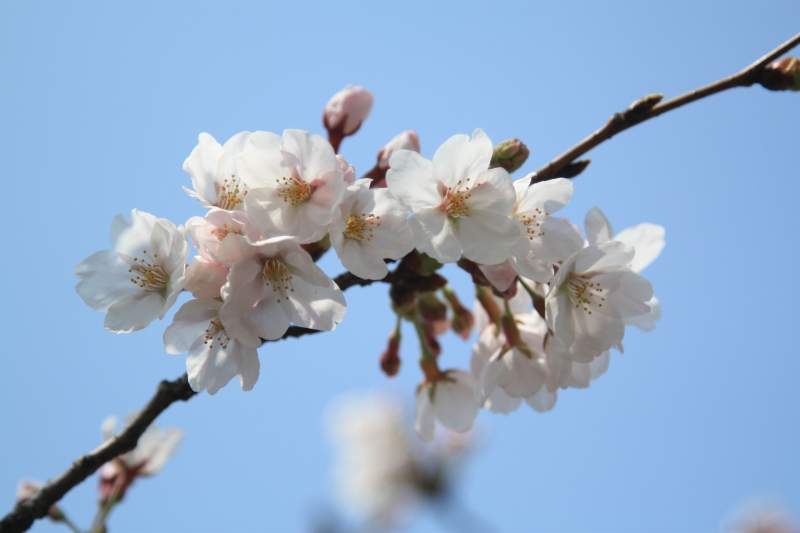 撮り直し。空の色はこちらの方が鮮やかなようだ。月と桜。欲張って散漫な写真か・・・。
