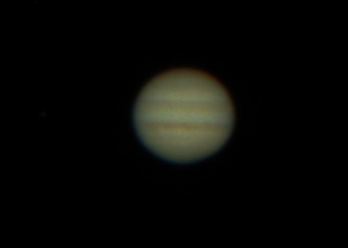 昨日も木星を。昨晩はシーイングが1~2/5 ひどかったです。生きた細胞のようにボヨボヨ変形してみえました。1枚の画像(1600×1200pix TIFFで撮影して640×480で切り取り レベル調整&トーンカーブ調整)ひどいですねぇ・・・そして57枚の画像をコンポジット(連写モード 1600×1200 JPEGで撮影して640×480で切り取り。Registaxで処理 レベル調整&トーンカーブ)何とか見える像に。今日の結論・・・素性の悪い画像は何をやっても余り効果なし最近の機材データ(木星)望遠鏡:ALTER-T(D=150mm f=1500mm)アイピース:Teleview PL-15mm+2x barrowカメラ:サンヨー DSC-MZ3動画は640×480までの制限静止画だと1600×1200なんだが・・・。古い機種の弱みです。
