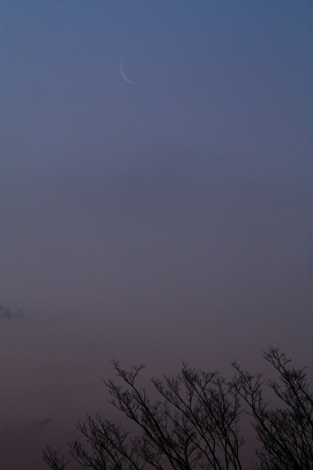 monthにmoonで似ていますね。月(期間)は月(天体)が語源なのかな?太陰暦だと月末ということで明け方,新月1日前の月を初めて見ました。もう少し早く起きたら・・・空の色のグラデーションがキレイだったかも。