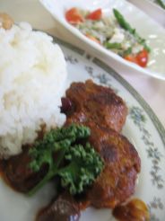 今日は、学校のPTA主催で、森永のM’s kitchen から料理の先生を招いて、おもてなし料理を教わりました。森永の製品を使った料理なので、牛乳や、チーズ、生クリーム、と言った乳製品のお料理。めずらしい料理ばかりで、すごい参考になりました★しかも、美味しかったし、行ってよかった!メニューは、チーズと栗の煮込みハンバーグ モッツアレラと雑穀米のサラダ ヨーグルトシェイク マンゴーのチーズロールケーキ 煮込みハンバーグは、パン粉の替わりに、ピザ用の細切りチーズを使っていたのは、結構びっくりでした。雑穀米のサラダも、米をサラダにするなんて、すごい発想(@_@)ヨーグルトシェイクは、普通のヨーグルトに、ジュースを混ぜるだけで、簡単にシェイクになるんだね~。 ロールケーキは、普通、生クリームだけど、今日のは、クリームチーズ60gとホイップ1/3カップレモン汁少々を混ぜたのを巻きました。クリームチーズ混ぜるだけで、全然違う食間(*^∀^*)すごい使えるわ!うん。