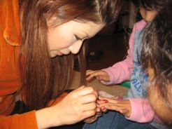 そして、昨日からは、私の方の実家へ。今日は、いとこの家にお邪魔しました~。ネイルサロンで、働く(確か・・・)いとこに、子供たちは、ネイルをしてもらいました子供達も、この時ばかりは、真剣!じっとして、ネイルしてもらってました。一本一本、全部違う絵を書いて貰って、超ごきげん★ほんとは、両手で、ン万するんだよ~。よかったね~子供達! 自慢では、ないですが、結婚して十年余り、一度もおせち作った事がありません。 妹(えっちゃんのお料理ページ)は、まめに、おせち作っていて、関心です。