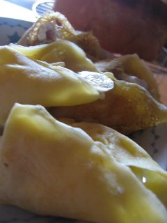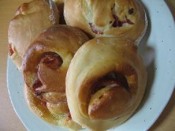 今日のおやつは、オレンジ寒天ゼリー渦巻きパンポンデケ―ジョの3点を作りました。 「スナック菓子が食べたいぃ~」とうちの、お子たちは、叫んでいましたが、お友達が、美味しそうに食べてくれたので、つられて、一緒に食べてくれました。(ホッ)渦巻きパンは、昨日もブログに書いた、主婦の友の付録レシピから作ってみました。生地を長方形に伸ばして、マヨと、ベーコンを挟んで、くるくるっと巻いていきます。で、端から、ロールケーキの様に、切っていくと、かわいい渦巻きパンの出来あがり♪なんか、渦巻きパンって、かわいいですねぇ~。我が子が、あまりに、憎たらしいので、渦巻きパンが、かわいくって(^^;)で、晩ご飯に、変わりギョーザを作ってみました。これは、Rちゃんママから教わったもの!材料は、白菜、ニラ、豚肉のスライスを小さく切って、あと、春雨をはさみで、微塵切りに切って、入れます。ちょっと、変わった、食間で、美味しかったですよ★お肉は、豚の挽肉よりも、豚スライスを使った物の方が、なんか、あっさりした感じでした。