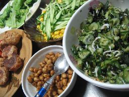 今日は、ともちゃんちに、晩ご飯を、およばれに行きました★なんか、いつも2ご馳走になっている気が・・・ともちゃんは、お惣菜作りが得意だなぁ~っていつも、思うね★私は、いつも、一品料理をば~んと出すのが多いので、こう言った、お惣菜料理っていいよね!今日のメニューは、 1,きゅうりの酢の物 2,大豆のカレー炒め3,コーンサラダ4,ブロッコリー&トマト5,ハンバーグ6,糸寒天のお味噌汁7,厚揚げ どれも、これも、美味しかったです★今日いちばんのお勧めは、「大豆のカレー炒め」めちゃ美味しい★是非お験し下さい!ともちゃん、ありがとねぇ~。また、よろしく!!で、Nちゃんに、うちの娘が、頭切れて病院に行った話をしたら、わざわざ、「ほんだのシュークリーム」を持ってお見舞いに来てくれた。あまりに元気な娘だったので、申し訳無い・・・ご馳走様でした★