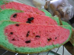 今日は、吹田から、お料理大好きなお友達、みなちゃんが遊びに来てくれました!みなちゃんは、お菓子や、パン作りが、めちゃ上手!!!学ぶとこが、多いです。今日も、クロワッサン、メロンパンの生地を上にかぶせて焼いたメロンクロワッサン、焼きぶたなどを作って来てくれました。で、今日も、2人で、パンを焼きまくりました★『ドリームスイカパン』は、先日、1万円生活で、よゐこが、作っていたやつです。あの番組直後から、娘達が、作ってくれくれとうるさかったので、わざわざ、友達から、このビデオを取り寄せて、みましたよぉ~。レシピは、至って簡単♪なので、下にアップしておきますね★で、みなちゃんは、韓流、華流にはまっている人なので、今日は、パン作り終わってから、F4のビデオを見ました。で、やっぱ、キムサムスン、見たらしくって、その話で、盛り上がりました!!何故か、韓流、華流だと、すんなり純愛ものが見れるのに、なんか、日本ドラマだとイマイチよねって話になって、なんでだろうね。日本のドラマは、軽く流せるやつの方が、好きなんだよねぇ~。あっでも、今年の秋ドラは、結構重い題材多いかな・・・で、今日も、みなちゃんから、BSでやってる、おすすめ韓国ドラマを教えて貰ったけど、もう、私、秋ドラ、華流も、日本のもWで見てて、目いっぱいやねん(><)1.ドリームすいかパン 2.カフェオレパン 3.クロワッサン&メロンクロワッサン 4.よもぎパン&焼きぶた 5.シャルドンのクリームパン♪ > ドリームスイカパン材料強力粉 225g 砂糖大11/2 イースト11/2 バター15g 塩小1/2 カキ氷シロップ大11/2 水130ml この分量で、赤と緑を2つ作る。作り方 イーストをぬるま湯で、溶かし、他の材料を全部混ぜ合わせて、捏ねる。(赤と緑2つ)1次発酵後、赤を丸めて置き、その上に、緑をかぶせる。2次発酵し、200度で25分焼く。Template design by ☆ponsuke☆
