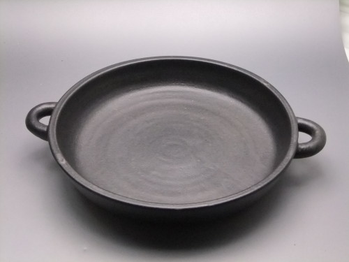 最近、気に入っていて、毎日使っている調理器具があります。ひとつは、陶板鍋というのですが、佐藤ケイさんという陶芸家のオリジナルの製品、こういう見かけです。友人が使っていて、焼き物、煮物なんでもすごく美味しくできると聞きました。お値段を訊くと、けっこう高価で、迷いましたが、毎日使ってるという彼女の熱心な勧めで購入しました。在庫がないとのことで焼き上がりを待って入手したのですが、2-3度使った後、ひびが入っていることに気づきました。わたしは↓↓の色が気に入って注文していたのですが、裏返した素焼きの部分に(写真は正規品です)放射状の黒い線が見えたのです。火にかけると、罅の中に入り込んでいた、前回使った油や洗剤が滲み出て来るのです。洗剤は使わなければいいし、油は拭き取ればいいけど、火にかけている間に割れたりしたら怖いと思い、作家の佐藤さんのアドレスを教えていただいていたので、連絡すると、代品を送ると言ってくださって、次の回に焼きあがったものを送って戴きました。残念ながら、お色は一番上の写真のマットな黒でしたが、でも実はこれが一番人気のお色なんだそうです。野菜炒めをしたり、炒飯を作ったり、すき焼きみたいな煮ものをしたり、本当に万能です。冷めにくいのでこのままテーブルに出したりできて、洗いものも少し楽です。佐藤さんご自身のお宅でも毎日使っているそうで、作家さんのブログにはこんな風に紹介されています。最初のお鍋も使えると思うので、送り返さなくて良いから使ってくださいと言ってくださったので、蓋にして焼き芋を作ったり、油を敷かずにパンや油揚げを焼いたり、昨日の天ぷらを温めるのに使わせていただいています。電子レンジやオーブントースターでするより、確かに何十倍も美味しいです。黒い方では、お肉を焼いたり、すき焼き風の煮物を作ったり、炒飯を(これがメチャうま!)作ったり、本当に毎日活躍してくれています。あ、余談ですが、作家の佐藤ケイさんお名前は本当は片仮名ではなくて、火偏に圭という字を使っていらっしゃいます。そしてもう一点は、グリルダッチオーブンなんですが、これが、陶板鍋以上のスグレモノなんです。商品名はオークス レイエ グリルダッチオーブン、商品写真ですけど、こんなのです。魚焼きグリルでお料理できるというのが気に入って購入しました。お肉とかお魚の切り身とかソーセージとか、本当においしく焼けるし、失敗がありません。使わない時はグリルに収納。だから邪魔にならないし。ただ、魚焼きのグリルに入る大きさなので、やや小さめです。お魚は切り身にしないと焼けないのがちょっと残念。今回ご紹介しようと思ったら、前に買った時より1500円位お安いお店を見つけました。【レビュー値引き】【送料無料】【IH対応】【レシピ付】オークス レイエ グリルダッチオーブン LS1507 [leye][AUX]【メール便不可】【クリスマスパーティグッズ】今、毎日ほとんどこの二つの調理器具を使っています。こんなにお安いなんて、もう一つ買っちゃおうかなあ。