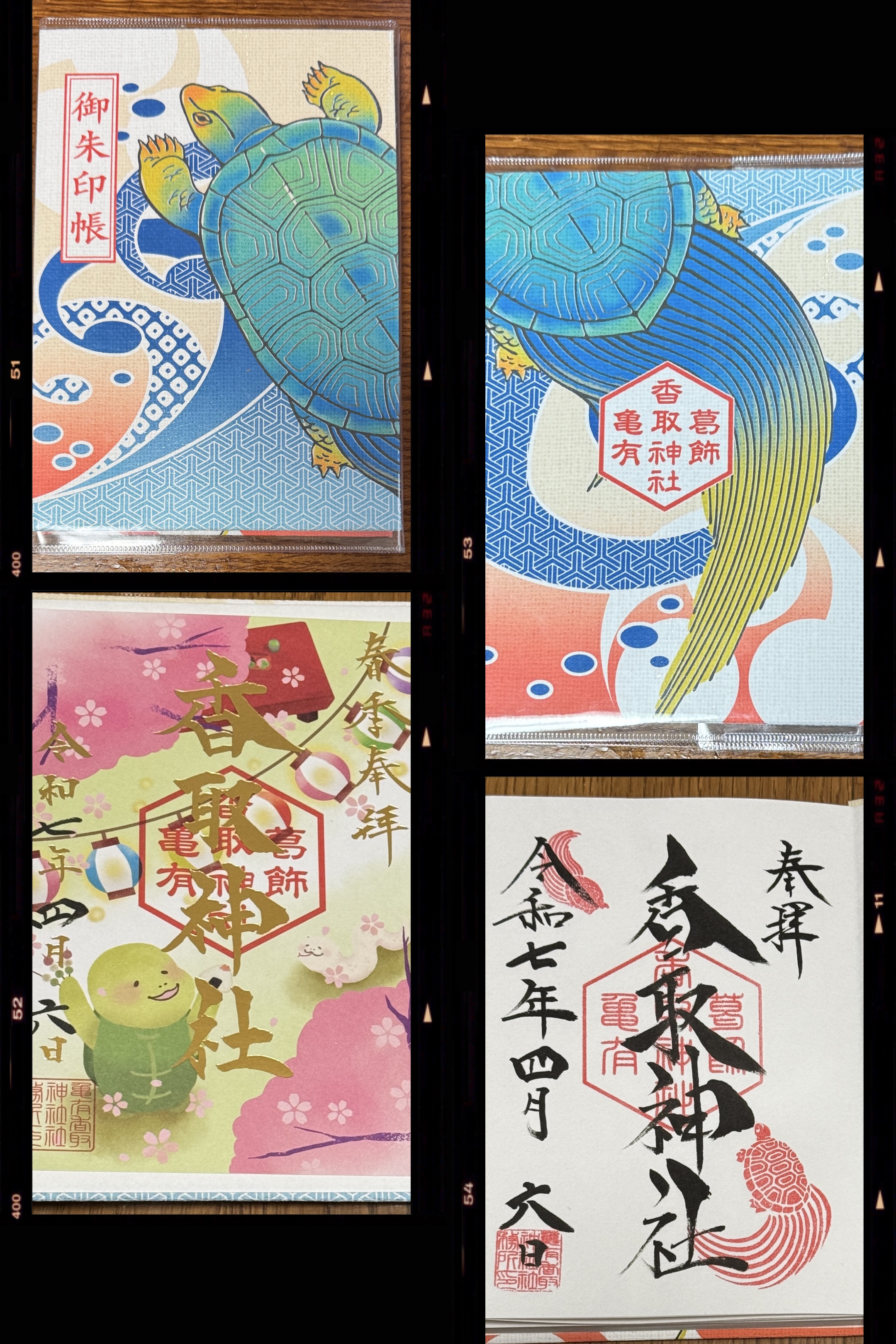 今回はこちらの神社のご朱印帳もいただきました。上の2枚が御朱印帳の表紙(左)と裏表紙(右)、