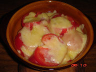 トマトを輪切りに切ってとろけるチーズのせてオーブンで焼いただけなんだけど・・。