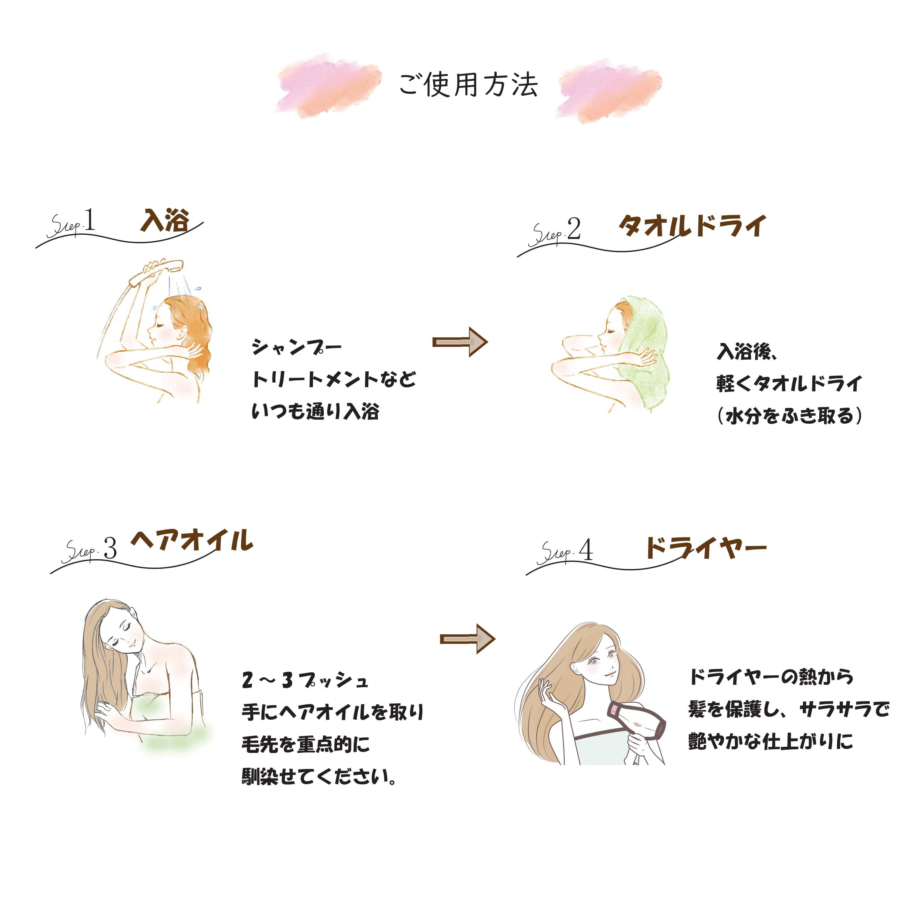 ​入浴→タオルドライ→ヘアオイル→ドライヤーの順番です。​