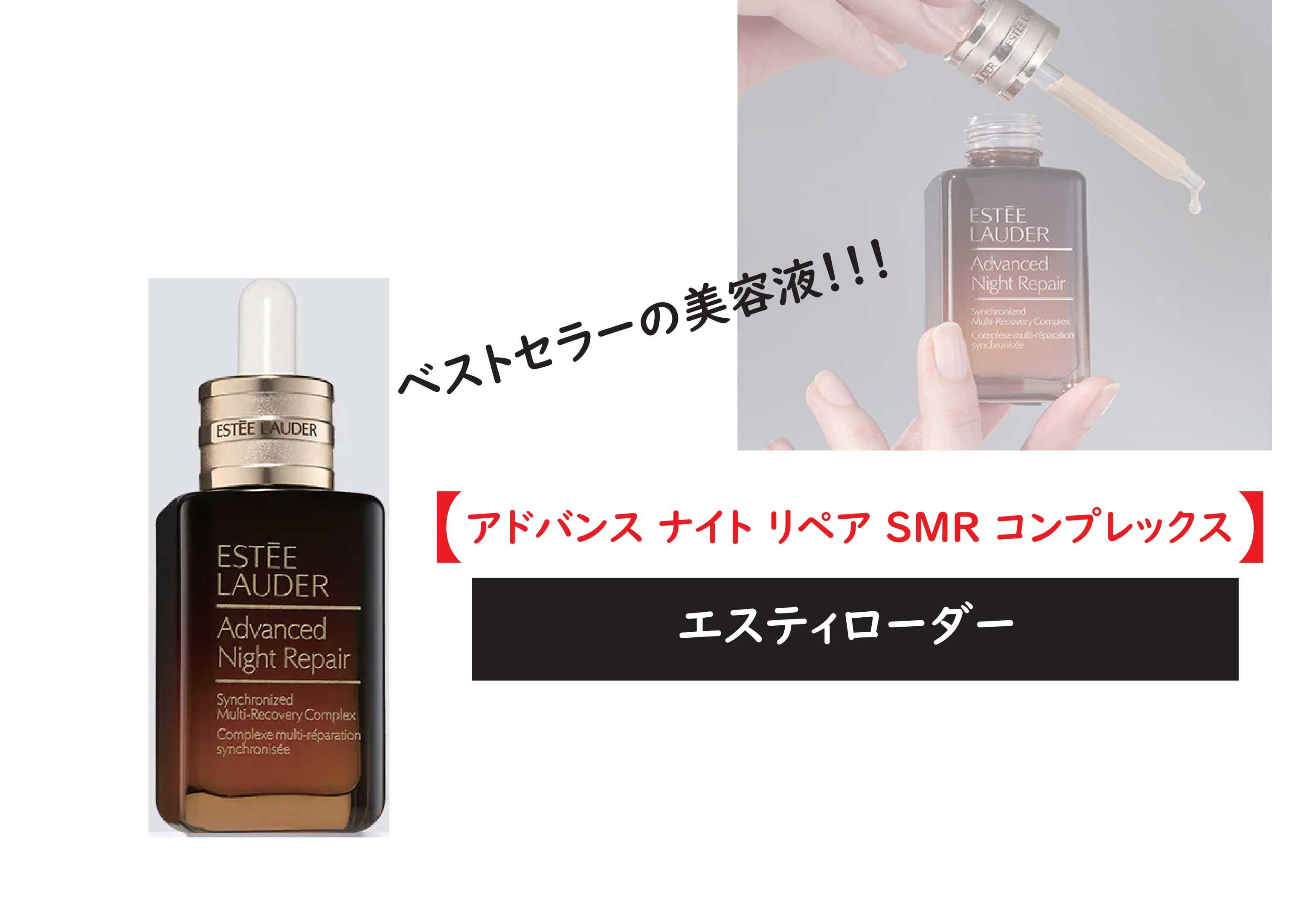 こんにちは赤です。今回はエスティ ローダーの人気美容液をご紹介。小じわやシワ、くすみでお悩みの方は参考にしてくださいね~。エスティローダーのスキンケア商品は人気で、そのなかでも美容液はヒット商品。その美容液のなかでも1番人気なのが「アドバンス ナイト リペア SMR コンプレックス」昼は乾燥などの外的要因から肌を守ってくれて夜は潤いと栄養を補給する美容液。今回はこのアドバンス ナイト リペア SMR コンプレックスをご紹介していきます。50ml【500円クーポン&エントリー5倍 10/25まで】送料無料 エスティローダー アドバンス ナイト リペア SMR コンプレックス 50ml | ESTEE LAUDER 美容液30ml10/25は最大P9倍♪エスティローダー アドバンス ナイト リペア SMR コンプレックス 30ml(0887167485471)20ml輸入品(イギリス)【ミニサイズ】 エスティローダー ESTEE LAUDER アドバンスナイトリペアSMRコンプレックス 20ml [485495]公式【送料無料】エスティ ローダー アドバンス ナイト リペア SMR コンプレックス (20mL) 1滴の力 1本の感動 エイジングケア うるおい 【ESTEE LAUDER エスティローダー エスティーローダー】(美容液)(ギフト)肌のリズムに合わせたお手入れに着目した美容液のようです。すこやかな肌には、日中ダメージから守り、夜間に修復して備えるというリズムがあります。そんな肌本来が持つ24時間のリズムに合わせたお手入れに着目した美容液。アドバンス ナイト リペアは、昼は環境要因による乾燥ダメージから肌を守り、夜はたっぷりなうるおいを与えてケアします。乾燥肌の方だけでなく、混合肌や敏感肌の方にも人気で、口コミでも高評価。スポイトタイプなので衛生的でお好み量が使えるのもいいですね。高級品なので1滴も無駄したくない肌質改善や、乾燥する季節には重宝したい一品ですね。それではまた~。フォロー、いいねいつもありがとうございます。