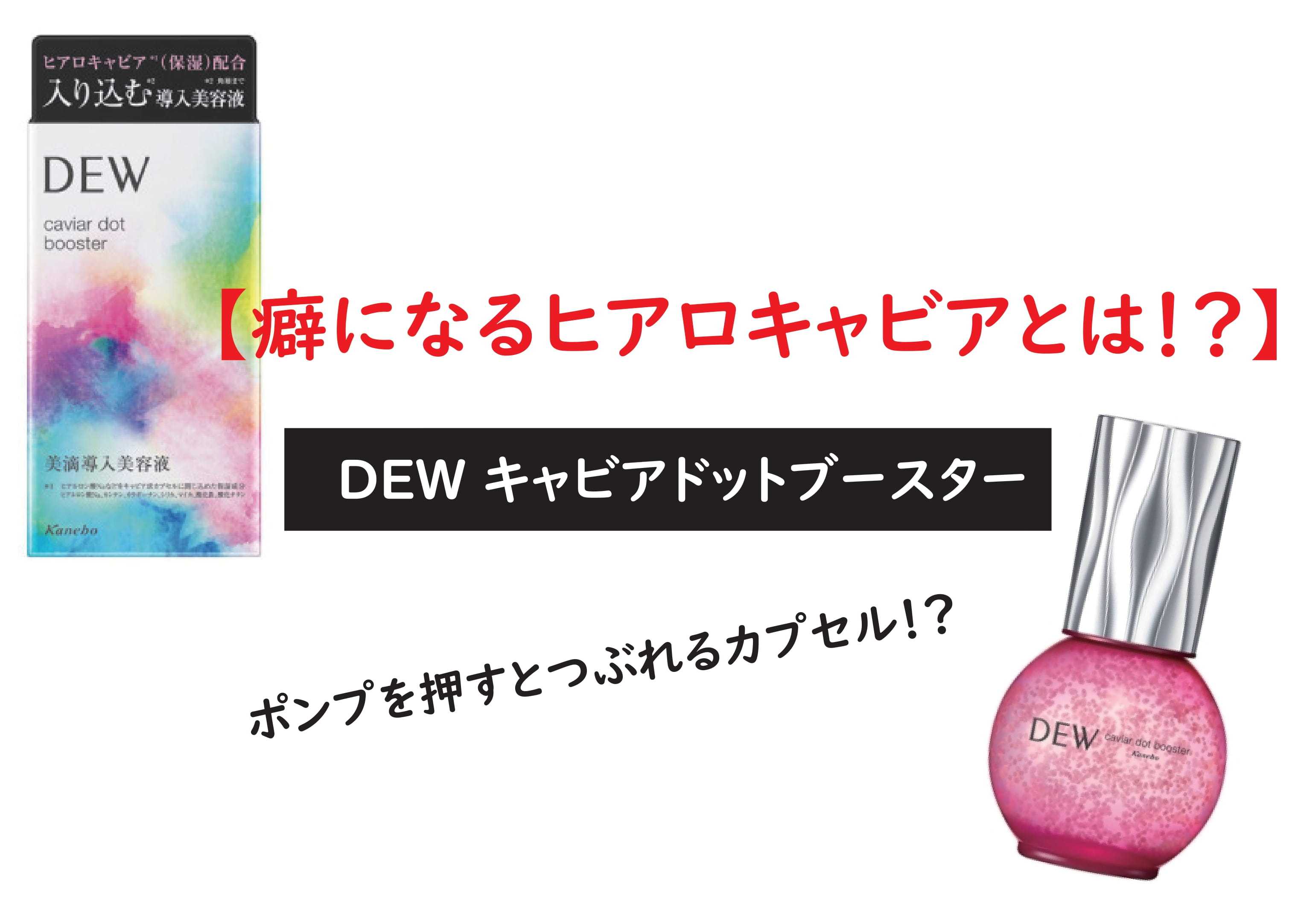 こんにちは赤です。今回は、またまた凄い美容液をご紹介。導入美容液。別名ブースターですね。ブースターは、化粧水の前につける導入美容液のこと。通常、クレンジングと洗顔の後には、化粧水を使って肌の状態を整えますよね。この化粧水の前にブースターを使うと、肌が柔らかくなって化粧水などが肌により浸透しやすくなるというもの今回はこのブースターでも爆発的に人気の商品をご紹介しますね~。カネボウ化粧品DEW キャビアドットブースター内容量:40ml 定価:4400円楽天価格:3349円+送料(500円)ヒアロキャビアの中にはヒアルロン酸Na、カンテン、カラギーナン、シリカ、マイカ、酸化鉄、酸化チタンが入っていて、ポンプを押すとカプセルが割れる仕組み。いつでも新鮮で酸化しないのがいいですよね。楽天のリンク張っときます↓↓↓↓★資生堂正規取引店 DEW キャビアドットブースター 40ml 美容液 【本体】◎◎手のひらにポンプ2〜3プッシュ押し分をとり、お顔全体になじませてくださいね。ちなみにレフィルもあるのでレフィルはこちらから~↓↓↓↓DEW キャビアドットブースター (レフィル) 40ml 美容液◎◎ぜひお試しあれ~~それではまた~。フォロー、いいねいつもありがとうございます。