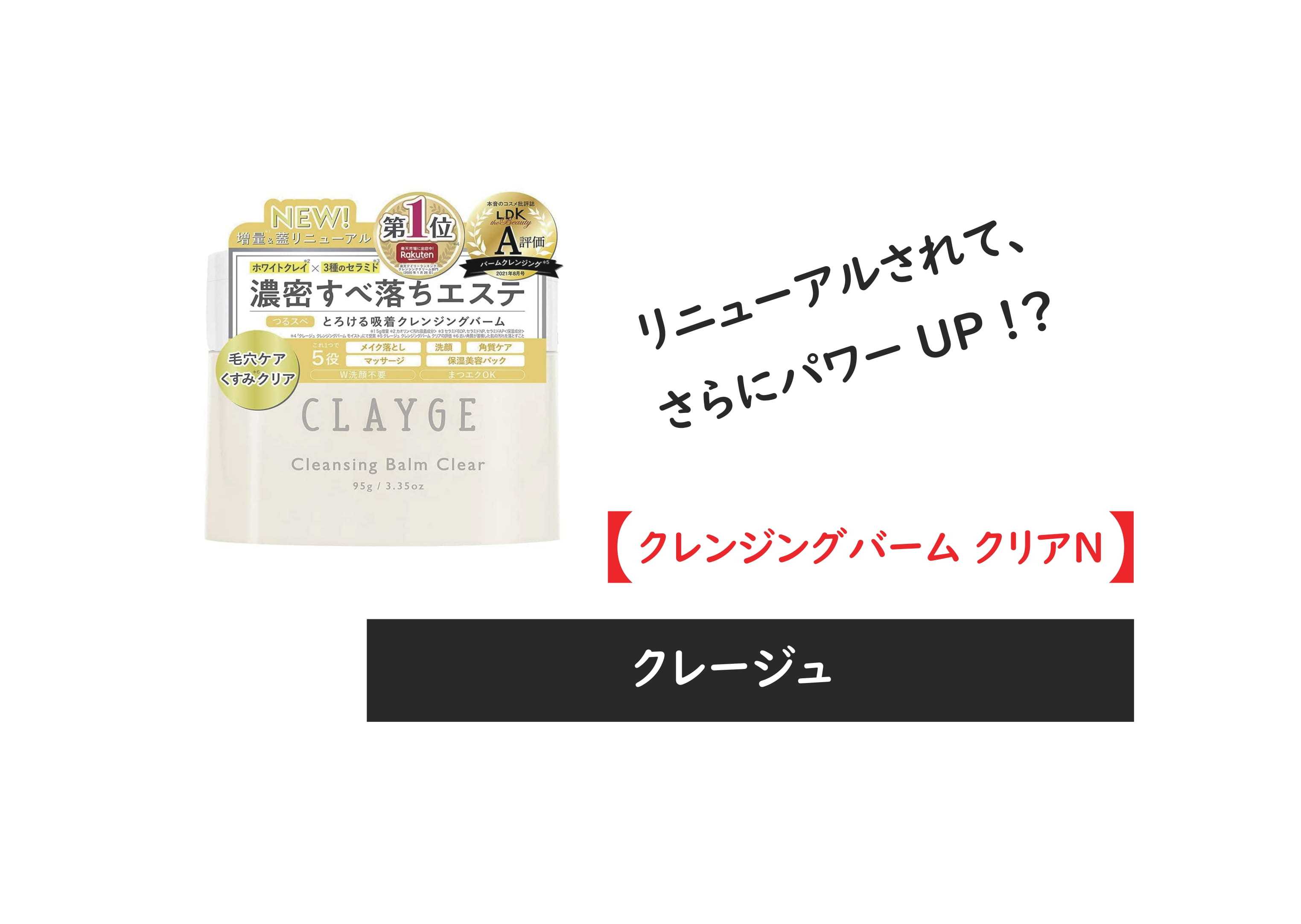 こんにちは赤です。最近、すんご~~い忙しくて、、なかなかブログ書けなくてすいません。今日は気になるクレンジングを紹介していこうと思います。今流行の成分が配合された商品ですよ~。クレンジングにも今は美容成分がたくさん入った商品が多いですね。今回ご紹介するのはクレージュ「クレンジングバーム クリアN」クレージュ クレンジングバーム クリアN 95g(配送区分:B)価格:1760円(楽天、Amazonどちらも変わらず)内容量95mlもともと「クレンジングバーム クリア」の名前で今年の8月に「クレンジングバーム クリアN」に変わりました。この1つでクレンジング・洗顔・角質ケア・マッサージケア・保湿美容パックの5つの機能を兼ね備え、毛穴の黒ずみ・くすみ・色ムラも、しっかり落とします。セラミドやビタミンC誘導体だけでなく、アルガンオイル、ホホバオイル、オリーブオイルなど良質なオイルと、スクワラン、コラーゲン、天然植物エキスなどの高保湿エッセンスを配合。最近のクレンジングは凄いですね。洗顔兼用にできるからめちゃくちゃ便利。しかもこの保湿エッセンスの量は美容液並み。ぜひ試してみてくださいね。それではまた~。フォロー、いいねいつもありがとうございます。