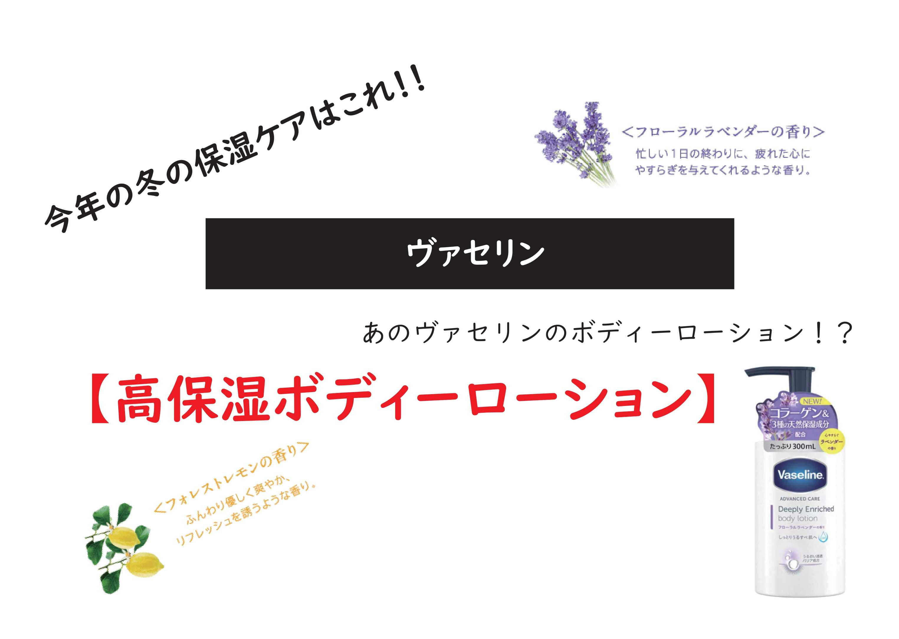 こんにちは赤です。今回は、ヴァセリンの商品をご紹介。ヴァセリンと言えば、リップやボディーケアに使える有名な商品がありますよね。ヴァセリンってブランド名なんですが、「ワセリン」を英語で翻訳するとヴァセリン。なのでワセリンをベースにした商品を提供しているのがヴァセリンと思ってもいいと思います。ちなみにワセリンにもプロペトや白色ワセリンなどがあって精製度によってワセリン→白色ワセリン→プロペトだったかな。プロペトの方が精製度が高いって感じだったと思います。間違っていたらごめんなさい。それではヴァセリンのボディーローションをご紹介していきますね。ディープリー エンリッチド ボディローション(フォレストレモンの香り)ヴァセリン ディープリー エンリッチド ボディローション フォレストレモンの香り 300mL【3980円以上送料無料】定価990円楽天価格:990円ディープリー エンリッチド ボディローションフローラルラベンダーの香りヴァセリン ディープリー エンリッチド ボディローション フローラルラベンダーの香り 300ml ボディローション アットコスメ定価990円楽天価格:990円香り以外は同じ成分です。ボディーケア用なので、やっぱり使いやすいのが便利。その点もポンプ式なので使いやすくていいですよ~。「伸びもよく」「べとつかず」「高保湿」マッサージにも良いのでぜひ試してみてくださいね。ワセリンの保湿力はやっぱり凄い。ちなみにボクシングなどでラウンド終わって顔にベタベタ塗っているものもワセリンなんですよ。知ってましたか?切り傷にも良く、傷口を塞いでくれます。しみたりもしませんよ。最強の保湿剤!!それではまた~。フォロー、いいねいつもありがとうございます。