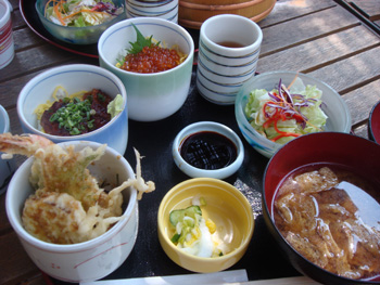 今日も犬連れのお友達が遊びに来てくれたので、ランチは「白壁カフェ花ごよみ」にまた行ってしまいました。今日は三色丼をチョイスしました。好きな小丼を3つ選ぶことができます。(デザート付き1,000円)今日は、娘が珍しく指しゃぶりをしたのでどうしたのかな?と思ったら下の歯が2本顔をのぞかせていました。成長は早いですね。この写真ではちょっと分かりにくいですね生後半年を迎えた今日、いい記念になりました。
