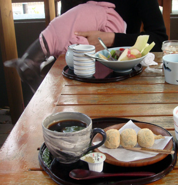 チャリティーバザーをする知人のために品物を持っていきました。オットは、私が「あなたのこの服捨てていい?」と聞くと必ず「ダメ」と行ってなかなか捨てさせてくれません。オットが独身時代に着ていた普段着は私が着るのを許可しないため、ずっとしまったままです。でも「バザーだから」というとなぜか張り切ってたくさん出してくれました私もこれからなかなか持つことがなさそうな、小さめのバッグやヒールの高すぎる靴、スーツ類などかなり整理することができました。冬物でもいいし、家でクリーニングしたものでもいいよとの事だったので6畳の和室三分の一くらいの量を処分することができました。自分では結構捨て魔のつもりでも、たまっているものですね。ベビーのいらなくなったものや夏物マタニティウエアは、同じ整体で妊娠した彼女に取りに来てもらうことにしました。チュニックやワンピースなどマタニティではなく普通の服ばかりなのですが、産後の私が着ると妙に違和感が・・・・。普段私の格好などまったく気にしないオットでさえ「その服ヘンじゃない?」と注意を受けたほどでした。その後、東区の白壁カフェ花ごよみでお茶をしました。犬連れのお友達と一緒だったので、テラス席が犬OKのお店にしました。ドックカフェと違い、普通のお店なので食べるものもとっても美味しくておススメです。彼女が言うには、「ドックカフェは味は二の次のところが多いからね」とのことでした。娘をスリングで連れて店内に入り会計しましたが、分煙されているけど店中がタバコの煙でモクモクでした。テラス席は私達だけで空気も良く、気持ちよく過ごすことが出来ました。手前はコーヒー(和菓子つき)390円です。お値打ちです!