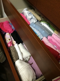 今日は娘の幼稚園ではお別れ遠足です。地下鉄に乗って科学館に行きます。普段はどうしても車で移動が多いので、皆で地下鉄に乗れるのはとても楽しみだったようです。私は、整理収納アドバイザーの方と作業日です。台所などもとても片付きました。まず、使い勝手を考えてから、細かく収納していきます。目からうろこの発見がたくさんありました。空間の使い方もポイントですね。余裕がないとあとから使いにくいですから。これは娘の洋服タンスの中です。たたみ方を変えるだけでびっくりするほど余裕ができました。ポイントは幅を合わせることだそうです。なるほどね!
