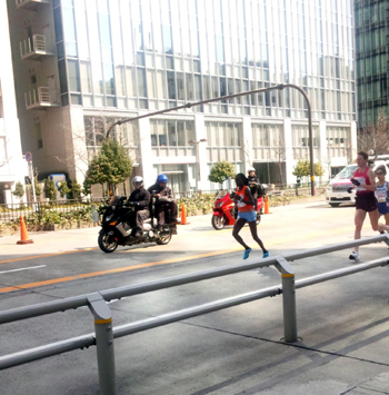 朝から何だか外が騒がしいと思ったら、名古屋ウィメンズマラソン2014の日でした。今日ははじめから車で外出はやめておこうと思っていたのですが、選手が走るずいぶん前から盛り上がっているんですね。ビックリしました。面白そうなので、子ども達と外に出て見物しました。ちなみにオットはいつも通り今日も出勤です。当分選手は走ってこない時間でしたが、チアの一団がいたり、着ぐるみと遊べたり、子ども達は楽しかったようです。先頭ランナーです。「ガンバレー」と子ども達と声援を送りました。