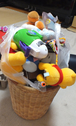今日は子ども達自身におもちゃの断捨離にトライさせてみました。整理収納アドバイザーの方に「おもちゃは子どもに捨てさせた方がいいですよ!」」とアドバイスを受けたので、「ふたりで話し合って、いらないものがあったらとりあえずゴミ箱にいれてみて!」と言ったところ、最初は二人ともがいらないものがなくて、勝手に捨てたりしてもめてしましたが、しばらくして戻ると、ゴミ箱が山のようになっていました。ほとんどが、ぬいぐるみです。タグがついたままのものもいくつかあって、二人には必要ないみたいです。息子は少しでも不具合のある銃のおもちゃは、全部捨てていました。例えば、音はなるけど光らなくなったなどです。個性が出て面白いなあと思いました。いらないものは偏っているので、これからおもちゃを買う参考になるのでいいとおもいます。午後からは、オットの手伝いで仕事です。子ども達が一緒なので、全然進まず6時過ぎまでかかってしまいました。お友達が引っ越しの協力を申し出てくれて、明日は私が出たり入ったりなので、Kちゃんが留守番&子守してくれるし、月曜日はYちゃんが夕方から子ども達を預かってもらえることになりました。やっぱり頼りになります!!ところで、昨日までのネットの契約ですが、まだ使えます