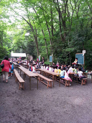 戦後から毎年開催されている熱田神宮の夏休みの林間学校(緑陰教室)の申し込みに行ってきました。小学生が対象で3週間毎日8:50~11:30(日曜日のみお休み)まで子ども達は勉強したり、神宮の話を聞いたり工作や音楽など盛りだくさんなカリキュラムです。値段は7000円で4年生は熱田神宮でのキャンプもあります。1年生なのであまり競争率は高くないと聞きつつ、並んで一杯だったらショックなので、お友達に3時過ぎに迎えに来てもらい、3時半からお友達4人で並びました。別のお友達は私立小学校ママと4人でなんと11時から並んでいました。熱田神宮の駐車場の入り口が分からず車でノロノロ走っていたら、パトカーについてこられてびっくり!駐車場に停めたら、職務質問されました3時過ぎには駐車場が空いているようなので、他の親たちは車から降りたらダッシュして走っていました。そんな様子を見ながら、警官は「今日は何事ですか??」と聞きました。「緑陰教室の申し込みで親が並ぶんです」と説明したところ「そういうことですが!やっとわかりました。普段この駐車場にこの時間車はいませんから」と納得して行ってしまいました。8時からの申し込みなんですが、6時前には定員に達する年が多いと聞きました。4時くらいが一番人が来るかな?とにかく蚊が多くて大変でした。長ズボン、ソックスで虫よけスプレーしても皆いくつもくわれてしまいました。私たちは真っ暗な中、おしゃべりしながら過ごしました。問題は朝の子ども達の支度を誰にお願いするか?なんですよね。私はオットに幼稚園の送りと娘の送り出しをお願いしました。元々緑陰教室面白そうじゃない!とオットも賛成してくれていたので良かったです。他のママ達も、旦那さんの出張をずらしてもらったり、海外出張から帰ったばかりだから朝はゆっくりできるから、とかいろいろ工夫して並んでいます。朝5時の風景 私が並んでいるところから撮りました8時から申し込みが始まりますが、20~30人ほどでまとめて説明しながら申込み手続きをするので、3:30~並んだ私たちの手続きが終わったのか9時前くらいでした。11時に並べば8時15分くらいには終わっていました。並んだ人全員が終るとお昼近くになってしまうようです。私たちの帰る頃1年生と5,6年生は余っていました。翌日申込みした子は1年生はまだ50人空きがあったようです。別の知り合いのママ(自分も緑陰教室に通っていた)も並んでいて、後で聞いたところ4年生が1番人気(キャンプがあるから)で1年生は並ばなくてほぼ毎年大丈夫なようです。来年は4-5時くらいでいいかな?これは他の人の申し込み用紙は出せないので、ちょっと大変ですね。名古屋市の公立小中学校の先生も講師として参加していますし、とても魅力的!楽しみです。ランチはお友達に誘われていたグリーンローズのパーティーへ参加。参加者全員グリーンローズのお洋服を着ての参加です。イタリアンを頂きました。場所は南山ハウスです、私は2度目の来店です。
