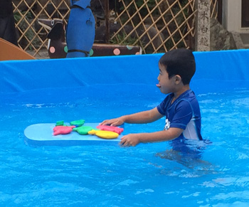 今日は息子のプール教室4日最終日です。4日間連続だから、皆すごく成長しました。K先生がひとりひとりの性格をよく知ったうえで上手に乗せてくれるので、子どもも知らず知らずのうちにできるようになっていきました。だって、スイミング初体験の子ばかりですが、もぐったり泳いだりできるようになるんですものね。息子の幼稚園は積極的にスイミングに通わせている子が少ないようです。これも幼稚園によってかなり違いますね。最後のお楽しみ、おもちゃ拾い息子はこれが大好きで、たくさんもぐって拾っていました。息子は5メートルくらいはきれいに泳げるようになりましたよ!コーチに「来年はクロールだ!」と言われて終了です。その後はお絵描き教室です。写真を取り忘れましたが、息子は3歳から応募できるスポーツ振興会のもの。娘は小学校提出用のポスターの下書きです。お絵かき教室では、皆、夏休みの宿題のポスターに取り組んでいました。娘も、参加賞があるものがいいよね!なんて決めました。ちょっといつもとは違う雰囲気でそれもまたいい感じですね。皆で「宿題のポスター、何にする?」なんて話しながら、決めていましたさて、そのまま仕事帰りのオットと待ち合わせて、豊田へ出発です。今年も豊田出身のママ友が、おいでん花火に誘ってくれました!指定席をとってくれて優雅に観戦です。夕食は毎年恒例の「かに道楽のお寿司」を買ってきてくれて、皆で頂きました。8家族の大集団だったのですが、素晴らしく気が利き、私の大好きなママ友のSちゃんが、子ども達に「迷子にならないようにね」と男の子には光るブレスレット、女の子には光るカチューシャを配ってくれて、用意万全です。いつも彼女のバックにはなんでも用意されているので、驚きます!今年も素晴らしい花火を堪能しました。Sちゃんの自宅に車を置かせてもらい、徒歩で花火会場に行けるからこそ、この花火を楽しめるので、感謝です。子ども達は、また毎年恒例でお風呂に入れてもらい、パジャマに着替え、歯磨きもして車に乗ります。帰りは道が混むので、子ども達は夢の中。今年もとても楽しかったです!ありがとう!