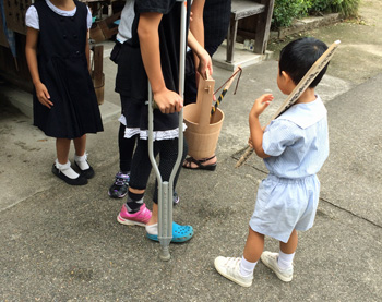 娘は緑陰教室をお休みして、成田山 萬福院の「おてらへいこう!~夏休み子供お寺体験」に行ってきました。去年1年生で行ったお友達がいて、「来年もあったらお誘いしますねー」と言われ3日ほど前に「一緒に申し込んでおきました」と連絡をもらいました。朝7時から12時までです。(小学生対象・無料)私は寝坊してギリギリでした。お友達のパパが駐車場で娘をピックアップしてくれました。ちなみに帰りも私の仕事先まで娘を送って来てくれました。帰りはなぜか、子ども4人も車に乗せていました。本当にいい方なんですお経の後、説教、そしておかゆの朝ごはん仏像を磨いたり、掃除をしたあとは、スイカのおやつ筆ペンで写経をしたあとは、チョコバナナのおやつチョコバナナの人は東京から来たらしいです。チョコレートは3種類あったとか、娘の話だと食べてばっかりのような??それから仏様のお話をきいたそうです。娘の感想は、掃除道具は早いもの勝ちで、竹のほうきが良かったのに、スニーカーが履きにくく出遅れた。雑巾は嫌だったけど、真っ黒になって面白かった。チョコバナナの1種類のチョコレートがすごく美味しかった。東京からきたチョコバナナの人が面白かった。仏様はママの様に悪いことをしたらすごく怒るんだって!大きなお菓子の詰め合わせセットと紙風船を頂いて帰って来ました。娘の説明ははっきり言ってよくわからないのですが、楽しかったそうです。良かった、良かった。私は息子も9時に幼稚園お友達ママ宅に預け、午前中仕事でした。13:30には合流して一緒に遅いランチをしました。かなり無理無理なスケジュールでしたが、子ども達が楽しく過ごせてよかったです。