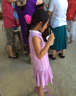 今日はオットの実家と私の実家へお参りをしました。ちなみにMちゃん宅へお泊りしていた娘は9:30に迎えに行きました。「来年の夏休みは赤ちゃんがいるから、ウチに来てね!」と約束しましたよ。私の実家近くのお寺で恒例のお施餓鬼の行事がありました。息子は長いものが大好きなので、塔婆(卒都婆ともいい、細長い板に塔の形の切り込みをつけ、 死者の追善供養の為に墓などに立てる板)を武器に見立てて、振り回す・・・そして娘と取り合いしてどちらがお墓に立てるのかともめておりました。いつまでもめるのか??お施餓鬼の後は、娘は愛知県体育館の短期スイミング初日です。食事を簡単に済ませて送って行きました。娘は90分のスイミングの後はさすがに疲れたようで、ぐっすり昼寝をしました。今日から7日間ハードな午後になります。クラスのお友達と明日は午前中からお弁当もちでトワイライトスクール、そしてその足でスイミングというスケジュールになりました。ママ達が交代で連れていく予定の役割分担制です。うんうん、いい感じです