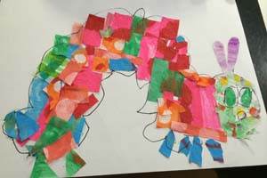 今日は、夏休み最後の平日ということで、娘はトワイライトお休みにしました。娘を連れて、オットの仕事のお手伝い。私は昨日娘がトワイライトで作ってきた作品がほとんと手つかずだったので、続きをして待っていたら?と持ってきたのですが、「もうやりたくない・・・」とすぐにギブアップ。塗り絵をして時間をつぶしていました。これは、紙にアクリル絵の具でペイントしてカラフルな紙をつくってトワイライトの皆でシェアしたようです。夜、息子が切り貼りして腹ペコあおむしを完成させました。全く根気のない娘です。用紙はすごくかわいいので、とっておきました。2日間連続で仕事をすると疲れる・・・・そして娘と1日中一緒だとさらに疲れが増しました。明日から家族旅行です!