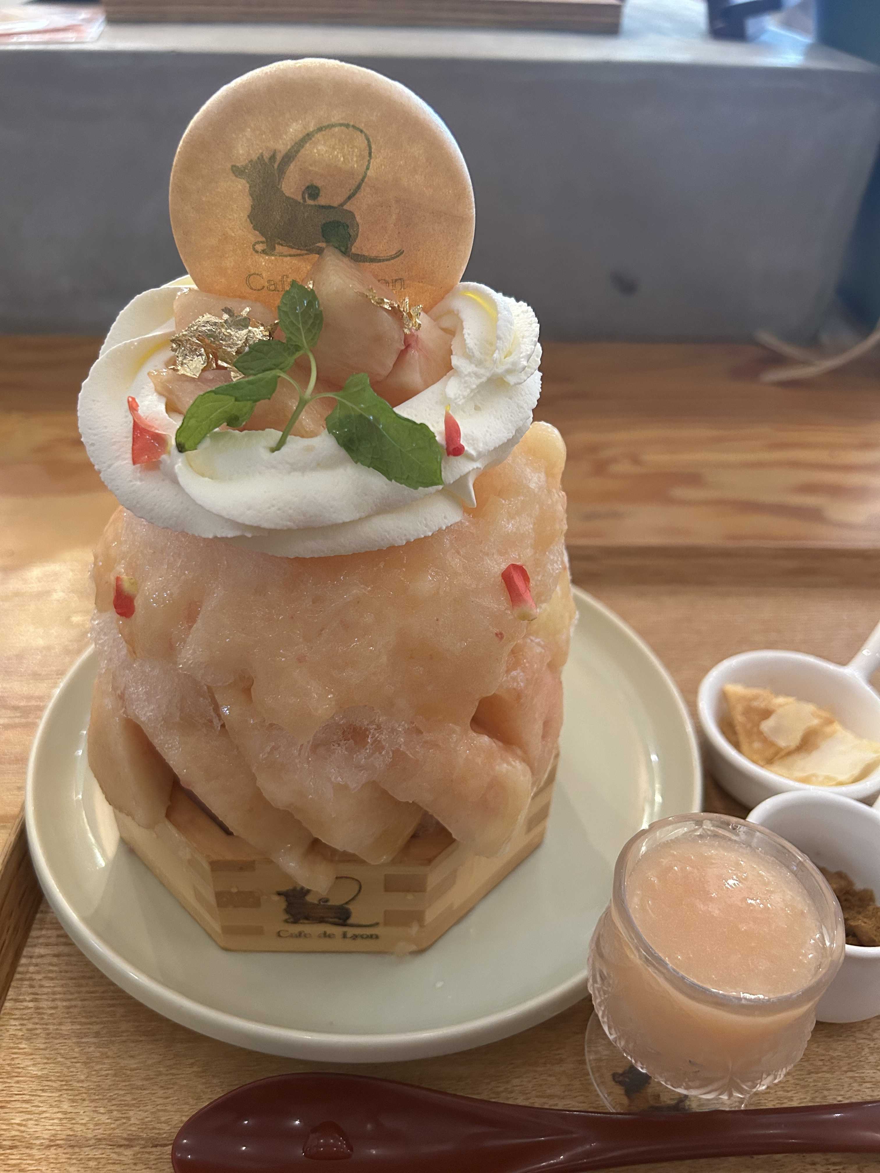 今日は朝からお菜をいろいろ作って、実家へ持って行きました。今日のおやつは大福とシュークリームです。(コンビニですが)ちなみに今朝の朝ごはんは、ホットケーキです。子どもたちは、大喜び😅 そんなに?お昼に不思議な整体に行って、少し頼まれごと。その後、かき氷を食べに行ってきました。いつものA.cocotto.bis の予約を取ろうとしたら、まさかのおやすみ💦 久しぶりにカフェ・ド・リオン・パレットに行ってみました。生白桃かき氷 飲み物付桃がとても美味しかったです。氷は荒めです。ソースは中にはかかっていないので、追いソース付。砕いたパイとクッキーも良いアクセントになっていました。生クリームは、四つ葉の生クリームに少しの砂糖だけで作ってあり、美味。これは、素晴らしい😊 お腹いっぱいですが、大満足!後のホットコーヒーもリオンだからしっかりした美味しいコーヒーで、良かった😊 税込2500円ちょっとですが、納得の価格。土曜日でしたが、席数は結構あるのにワンオペなので、時間はたっぷりかかります。美味しかったから、満足でしたよ。夜は、子どもたちだけだったので、テンションあがりました😊 生地から作ったピザを焼きましたよ。息子がサラミが良いと言うので、スーパーでサラミを購入。近所のスーパーでも売っているんだ!トマトソースも作りました😊 あとサラダだけで簡単な夕食です。週末はいつもとちょっと違う夕食が良いなあと思っています。まぁできる範囲で。