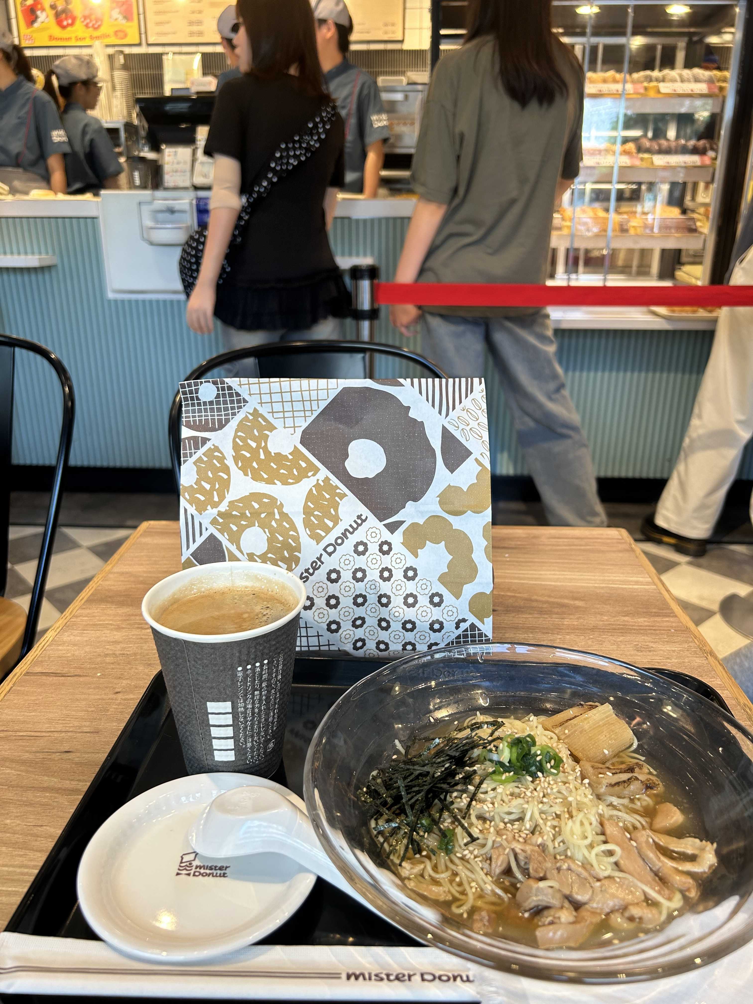 朝はSちゃんがきてくれたので、立ち話😊マンゴーありがとう♡昨日は、あっという間に1日が終わってしまったので、今日は映画を観に行きました。今、話題の国宝です。午前中からの回ですが、1列目からギッシリ満席!たっぷり3時間楽しめました。もっと長くても良いくらい😊是非、映画館で見て欲しいです。映画が終わってから、ミスドでもっちゅりんの出来上がりを待ちながらランチしました。ドーナツを買って聞き込み💦したら、1時間以内には並ぶような感じでした。私もウチであん掛け麺の用意をしてきていたので、この冷麺、具が少ないわーと思いながら食べていたら、ショーウィンドウに空きスペースが出来たので、そろそろねと気づいて、食器を片付けました。そのまま並んで、3番目にゲット出来ました😊娘に全種類とリクエストされていたので、MAX買える2個ずつ買いました。お餅みたい😊 私と息子は、みたらしときな粉が好きかなあ。
