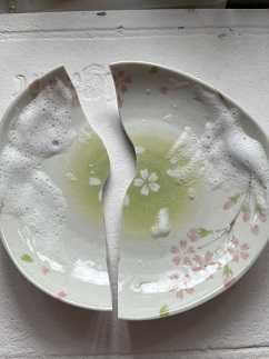 ぶどうを乗せたお皿を洗っていたら、見事に真っ二つ割れた