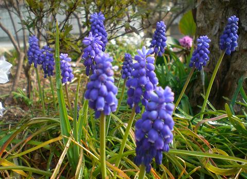 植えっぱなしのムスカリが、今年もぴょこぴょこと顔を出しています。 お邪魔虫の花にらですが、こうやって競演しているのを見ると、綺麗ですね。 昨夜も長い地震がありましたね。 結構揺れていました。怖いのは怖いながらも、震源地がひどくないように、と祈っていました。せっかく、やっと、復興のきざしが出てきたのに、心が折れはしないか心配です。 今日は、十分ほどで大急ぎのブログ更新です。老人施設のS子さんを、近所のY先生といっしょにお訪ねする約束です。昔、お料理の先生だったYさんが、お得意の巻き寿司を作り、それをS子さんのお部屋で、お昼として、いっしょに食べよう、という計画です。あら、うれしい! 施設のお昼を断らなくては、と大喜びのS子さんでした。もう、十一時なので、出かけますね。 ブログランキングに参加しています応援のクリックをよろしくお願いします。