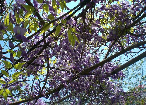 藤の花が満開です。房を手のひらでそっと握ると、しっとりと冷たくて、この感触が好きです。 友人二人が訪ねて来てくれました。この藤棚の下には、テーブルとイスがありますが、太陽の位置によって、朝は居心地の良かった場所が、まぶしくていられません。 訪ねてくれた午前10時半は、この狭い場所が木陰になっていました。カリンの木の下です。椅子を運び、ティータイム。風がそよそよと吹いて、とても気持ちがいい。藤の花の甘い香りが漂ってきます。 とっても居心地がいいよ、この場所を広げたらいいんじゃない。そんな、人のことだと思って、簡単に言わないで。などと、ぺちゃくちゃ、女三人の話はお昼過ぎまで続きましたとさ。 ブログランキングに参加しています応援のクリックをよろしくお願いします。