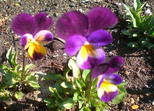 名づけてスミレの小道。 両側にびっしりとスミレが、顔を出してくれていますよ。 最初の写真の、真ん中の白い棒を上へ辿ると、こんな看板が。Alley of Violets気取って「スミレの小道」なんて書いてありますよ。 下手な字ですね。 山路を行けば、そこここに普通に咲いている自生のスミレです。このひっそりとした地味な色が、山でははっと目を惹きますね。赤城山で頂いてきたものが、こんなに増えてくれて、小道を作っています。今年も、去年に変わらずスミレに会えた。ありがとう、という気持ちです。 ブログランキングに参加しています応援のクリックをよろしくお願いします。