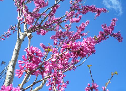 空を見上げたり、しゃがんで地面を見たり、花が次から次へと追いかけてきます。今日は、どの花を主役にしてあげましょうか。今日は、空組さん。 花蘇芳です。 枝に直接、蝶形の花がびっしりと付いています。これでも、豆科。 花が終わると、豆の鞘がいっぱいぶら下がるから納得します。 友人が、急に来てごめん、と言いながら、やってきました。車から降りるとき、アンリ(犬の名前)を抱いています。3月11日の、あの地震のとき、友人は、私の家にいました。少し落ち着いたとき、一人で留守番をしているアンリが心配になり、あの子、臆病だから、どうしているかしら、と話したものでした。 やはり、相当怖かったらしく、トラウマになっていて、ひとりで留守番をしなくなってしまったんですって。だから、どこへ行くのも一緒です。可愛い目をパチクリさせて、抱かれていると、幸せそうです。 しばらく花を見たり、お茶を飲んだり、いっぱいおしゃべりして、ありがとう、なんだか、気持ちが落ち着いたんよ~、と帰っていきました。お互いさま。私も同じです。誰かと喋るのって、気分転換になりますもの。人も犬も、みんな、何となく不安な日々を送っています。 ブログランキングに参加しています応援のクリックをよろしくお願いします。
