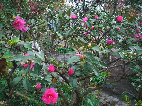 寒椿です。 足元をすかせて、枝が均等に広がり、ポツポツと均等に花が咲くように、剪定してあります。 我流なので、そのつもりというだけですが・・。とっぴな考えですが、ディズニーランドのピーターパンを思い出しました。私の大好きな場所です。空を飛びながら、見下ろす人家の灯り。その一つ一つに生活がある、と思うと切なくなるほど感動するのです。みんな、繋がって生きているんだな、なんて。 それで、つながって生きている、という話をします。九州の本家のほうへ、半月間旅行しておられた91才のY先生から電話あり。お土産があるから、来てくださらない?今度いつS子さん(老人施設入居)のところへいらっしゃる?ご一緒したいんだけれど・・・。 忙しいのに、ごめんなさいね。こういう具合に、上手に頼まれてしまいます。 先生には、いろんな人が色んなことを依頼されて、動いています。みんな話しています。人を使うのが、お上手よね~(笑) 、って。でも、みんなを集めて食事会をしてくれたり、お茶会をしてくれたり、そういう楽しみがあるし、先生の話も面白くて、博学で、結局は集まってしまいます。 私は、人に頼まれることは多いけれど、その逆は、とても苦手です。だから、Y先生の、人脈というか、上手な依頼の仕方には感心してしまいます。それは、長年つちかってきた「人間力」だな、と思うのです。老いから若きへ、つながっていくことは大事。私も若い人へ、頼めることは頼めるような、繋がりや人間力を培っていきたいものです。 ブログランキングに参加しています応援のクリックをよろしくお願いします。