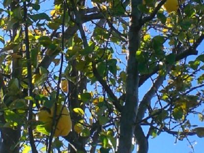 今朝のカリンの木。畑の真ん中にある他所のカリンは、葉っぱが一つもついていず、大きなカリンの実だけがくっついていて、黄色が目立ち、とてもきれいでした。畑は、きっと風当たりが強くて、葉っぱが落ちたのでしょう。うちのはまだ葉っぱも実もいっばい付いています。 昨日の一日中吹き荒れていた風のせいで、地面にもいっぱい落ちています。でも、もう要らないね~ 今までに、庭のテーブルに晒しておいたカリン12ケがありますもの。さあ、今日は、いよいよ、晒して切りやすくなったカリンを使いますよ。カリンは熱湯で洗い、ビンも熱湯消毒しましたよ。 二つに割るときに、力が要りますが、あとはさくさくと気持ちよく切れていきます。 切ったカリンの実をビンにいれ、蜂蜜を注ぐだけ。一ヶ月以上熟成させれば、美味しいかりん蜂蜜の出来上がりです。とってもいい匂い! 綺麗でしょう? 琥珀色にうっとりです。カリンの実がいつも浸っているように、ときどきビンを揺すります。本当は、種も入れるといいそうですが、濁るので除きました。 こっちはね、わたし用かな~(笑)、 ホワイトリカーで漬けましたよ。こらは、一ヶ月くらいしたら、一度漉すので、種も入れました。大仕事をした気分です。 ほっ ブログランキングに参加しています応援のクリックをよろしくお願いします。