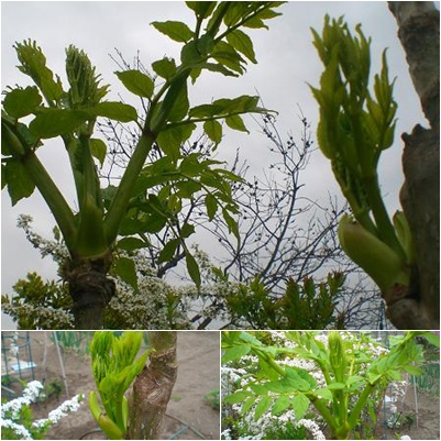 庭つづきに、少しだけ畑があります。キッチンガーデンというほどのしゃれたものではないのですが、食べれるものが植えてあり、食卓に出せるものが少しずつ増えています。今日の主役は、タラの芽。トゲ無しに植え替えて三年目、節々に芽を出しています。 香りのいいウドも、伸びだしてきましたよ。ウドは、新葉の天ぷらも、香りが良くて、おいしいですよ。 カキ菜は、毎日食べていますよ。玉ねぎもきっと土の中で、収穫されるときを待っていることでしょう。アスパラは、これは昨日の写真ですが、今日はもっと伸びていますよ。 こちらは、イチゴが一列だけありますよ。 イチゴの花、可愛いですね。毎年、おなじ株のランナーを更新しては育てていますよ。わたし一人が毎朝食べるくらいは収穫できます。 今日は、娘の家で、収穫したものの天ぷらをすることになりました。いまから出かけます。 二泊の予定ですので、二日ほどブログをお休みします。 ブログランキングに参加しています応援のクリックをよろしくお願いします。