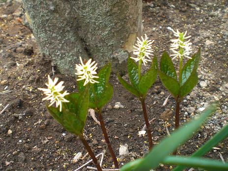 季節の進むスピードはとても速い。いつの間にか、ゆすら梅の花が満開になり、葉っぱが出始めています。俗名は「ゆすらご」、なんだか可愛い呼び名です。六月になれば、ツヤツヤとしたルビーのような真紅の実がなり、私のおやつです。 この季節は、上見たり、下見たり、忙しいですね。足元には、ムスカリたちが続々と顔を出しています。 毎年、丸い輪状に、どっさりと芽を出すヒトリシズカが、今年は四本だけ。どうしたのかしら。 四本とはあまりにも寂しいですね。 日本桜草も咲き始めましたよ。 上品ですね。 花の形が船のイカリみたいだから、イカリソウ。一度植えれば、毎年ちゃんと顔を出してくれる宿根、球根に感謝です。 ブログランキングに参加しています応援のクリックをよろしくお願いします。
