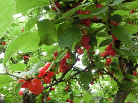 樹木の赤い実は、なんて美しいのでしょう。艶々キラキラ、まるで宝石です。ゆすらご、今どきは誰も食べませんが、生食できますよ。樹の下に立ち、5、6粒を口に含み、ペッと種を出します。おいしいのですが、この種がめんどうですね。少しだけジャムを作ってみようかな、と思いつき、一部を収穫してみました。ゆすらごの量の、三分の一のグラニュー糖を混ぜ、レモン汁を振りかけます。ウフフ、この時点でもうおいしそう!弱火で20分煮て、実が潰れてきたら、ザルで濾し、種を取り除きます。ペクチンを入れると、ほどよく固まり、失敗なく出来ますよ。ペクチンを入れてから更に10分煮て、熱いうちに瓶へ。わあ~、素晴らしい! なんて綺麗な色! 見ているだけで幸せ。トーストに塗って食べたくて、ジャムが出来上がるまで、朝食を待っていました。レタスが多すぎと思われますか。 庭のレタス、毎日食べないと食べきれません。新玉ねぎのスライス。トマト。炒り卵は牛乳、チーズが入っていますよ。ジャムの味ですが、ちょっと甘すぎたかな。でも、素材がおいしいのだから不味いはずがありません。ご馳走さま。美味しかった! 花ブログランキングに参加しています応援のクリックをよろしくお願いします。