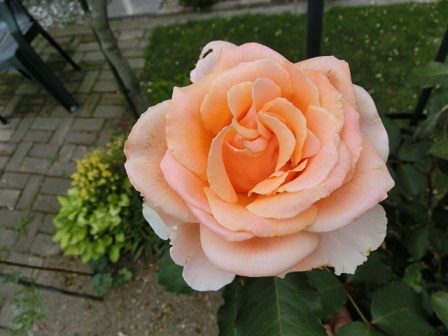 昨日、ふらりと寄ってくれた人から、白いトレニアを頂きました。どこに植えようか、と散々迷った結果、レンガ小道の横に植えました。このレンガ小道の全部を見て頂けますか。 ここは、庭の続きにある畑だった場所です。 庭はこの写真の手前にあります。一人暮らしでは、野菜はもらい物で間に合うし(笑。貰うことが前提ですね~)、右側だけを畑に残し、左側は庭からの延長のようにしたい、と思っています。そんなことを思いついたのが去年で、畑との区切りにレンガを敷きました。途中で、レンガが足らなくなり、気になりながら、そのまま一年が過ぎています。やっとレンガを購入してきて、奥の椅子までの小道を完成させました。一日伸ばしにしてきただけに、嬉しい気持ちです。よくこんなに長い間ほっときましたよね。オレガノの蕾の色が、濃くなってきて、とても綺麗です。これが開くと、花は白っぽいので、私は、この状態の色がとっても好きです。横にあるこの椅子も、ガタガタになっていたのを、友人のご主人が修理してくれ、鮮やかな黄色に塗られていました。それがまったく剥げてしまい、今度は水色に塗ろうかな、とか構想だけはあるのですが、ついつい後回しになっています。今日は、午前中はヨガ教室ですが、その帰り久しぶりに園芸店に寄ろうかな。 花ブログランキングに参加しています応援のクリックをよろしくお願いします。