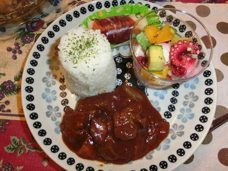 今日は忙しくて、庭の花を撮る時間がなくて、料理のみです~孫のお誕生会のワンプレート料理。メーン料理は、ママ手作りのビーフシチュー。 とっても美味しかった!タコとズッキーニとパプリカのあえ物。生ハムの大根巻き。エビを細かく叩き、アボカドと和えたものをフランスパンに塗りつけて焼きます。オレンジ。オレンジの切り方って、いつも悩むでしょう?先日テレビでやっていたこの切り方がすごく気に入ってます。私がオレンジを買って行って、マイナイフも持って行って切りました。私は果物が苦手で、自分ではほとんど食べないんですけどね、この切り方をやりたいがために、家でもオレンジを買って、お客さんを待ち構えています。ケーキ。 18才、三年生は部活も引退で、打ち上げをやったんですって。来年はもう家から出ているかもしれないし、誕生会なんてこれが最後かも、なんて言いながら、美味しく頂きました。妹は17才。彼女は11月がお誕生日なのですが、ここ何年間かは、私がいつも海外旅行と重なって参加していません。今年はどうなの、なんて言われました。海外、行きたい気持ちと、もういいかな、という気持ちと半々。そんなことは今までは考えたこともなく、毎年わくわくと計画してきたのに、気持ちが後退しているということは、年を取った証拠だな、と思います。こうして、孫は成長し、私は年を取り、これからの10年は大きく変わっていくのでしょうね。 花ブログランキングに参加しています応援のクリックをよろしくお願いします。