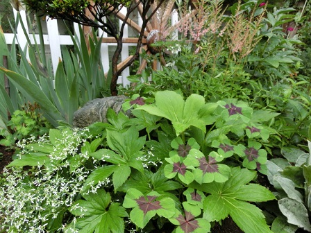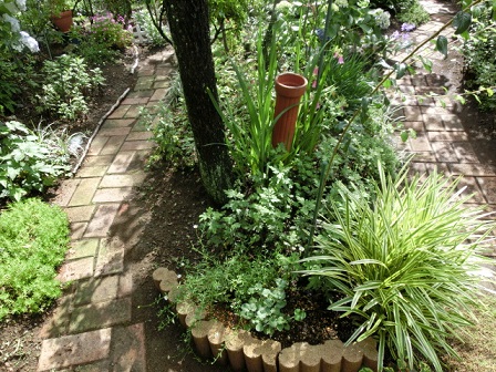 カラミンサ。別名はカラミント。名前から分かるようにハーブの一種です。先日、買ったばかりなので、これから大株に育つと思います。昨日の夕方、近所の人が「百日草」と「クレオメ」の苗を持って来てくれました。これは百日草ですが、去年のこぼれ種からの苗だそうです。こちらは、クレオメの苗です。これもコボレタネから。 大きな葉っぱのホスタの花が開きました。 花も大きいですね~この場所は、レンガではないけれど、やはり小道が出来ていますよ。同じ並びに植えてあるこの黄色の小花も、昨日の人に頂きました。名前は分かりません~その先には、ガクアジサイ。こんな感じの小道です。 花ブログランキングに参加しています応援のクリックをよろしくお願いします。