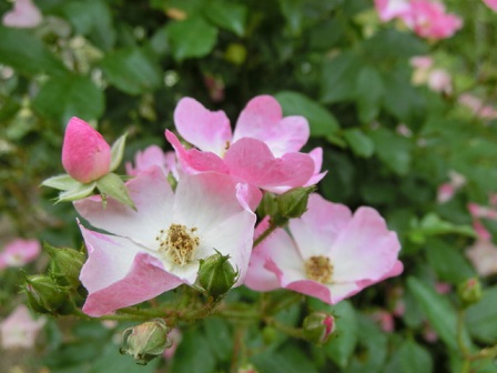 この蔓バラが「バレリーナ」なのかどうかは正確には分かりません。便宜上、勝手にそう呼んではいますが。優しい色と形、それに花数も多くて、好きな薔薇の一つです。賑やかなおしゃべりが聞こえてきそうな薔薇ですね。 足元には京鹿の子が開き始めました。線香花火がパチパチと四方に散るように、この弾け始めたころが美しいです。 昨日は、私が蜂に刺された事件でご心配をかけてすみませんでした。刺された頬には、痛みも脹れもほとんど無く、目の周りがかゆい程度です。近所の人で、アナフィラキシーショックになった人を知っているので、神経質なほど、すぐにお医者さんへ、という構図が私の頭には出来ていますが、これがやっぱりいいみたいですよ。皆様もお気をつけくださいね。 同じ隣保の方が、ちょっと来て頂きたいというのでお邪魔しました。もう一人隣保の人が見えていて、三人でお茶を頂きました。一昨年の暮れにご主人が亡くなり、一年半一人暮らしをなさっていました。今年の七月で88才になるそうです。血圧が安定せず、目も悪いし、お医者さんにも一人暮らしは無理と言われ、自分で限界を感じて、息子さんの住む他県の施設へ入居するそうです。今月の末には、引っ越すのでお世話になったわね、というご挨拶でした。 総二階の立派なお家と広い庭が無人になるわけです。ここのお家とうちは背中合わせという位置関係で、ブロック塀で遮られています。玄関に行くには、ぐるりと何軒かを回り込むので、時間がかかります。庭にいると、野菜いる? とブロック塀越しに伸び上ってもらったり、夜は、電気が付いていると、ああお元気ね、と思ったりしていましたが。これからは、真っ暗な家が見えるのね、と寂しくなりました。周りも私も年を取っていき、どんどん状況は変わっていくのでしょうね。未来は誰にもわかりません。今が幸せ、今を大切に生きていこう、と思いました。 花ブログランキングに参加しています応援のクリックをよろしくお願いします。